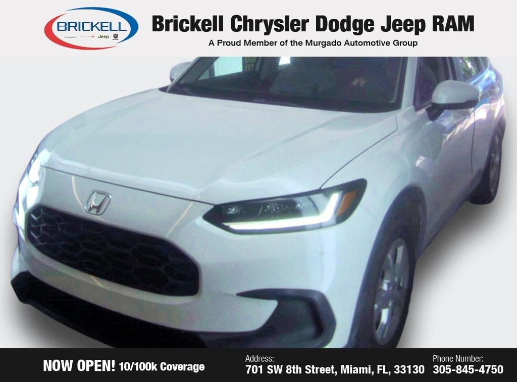 White 2023 Honda HR-V LX FWD CVT 2.0L I4 DOHC 16V i-VTEC HR-V LX, 4D Sport Utility, 2.0L I4 DOHC 16V i-VTEC, CVT, FWD, White, Gray Cloth.
