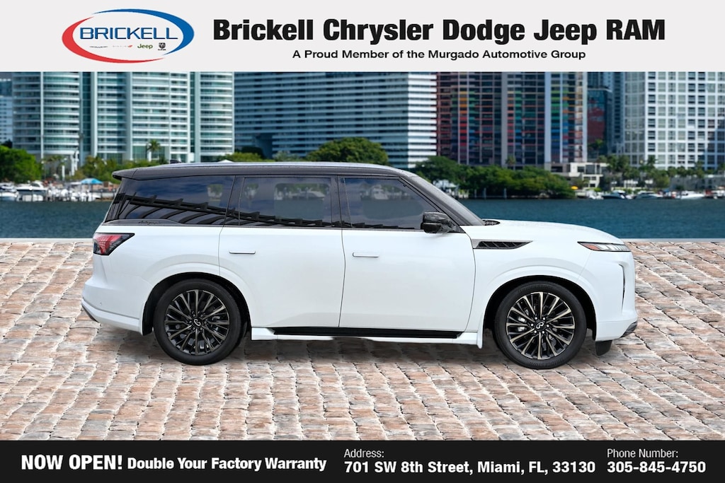At Brickell CDJR, we make buying a pre-owned vehicle easy and stress-free. Every pre-owned vehicle is thoroughly inspected to ensure quality and reliability. For added confidence, we include a **10-year/100,000-mile powertrain warranty on all non-European brands** at no additional cost. Our dealership offers one of the largest selections of pre-owned inventory in the region, so you can find the right car, truck, or SUV for your needs. Our state-of-the-art service department, the largest in the country, is open seven days a week from 7 AM to 9 PM, ensuring your vehicle stays in top condition. Visit us at 701 SW 8th St, Miami, FL 33130, or call 305-777-2800 to learn more and schedule a test drive. The displayed price includes an incentive for financing with Brickell CDJR Finance Company. Price does not included our Perma-Plate .Outside financing and bank drafts are not accepted. All pre-owned vehicle exports are subject to an export fee. Taxes, title, registration, and dealer fees apply.