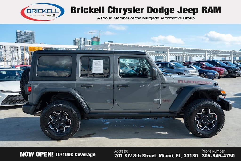 At Brickell CDJR, we make buying a pre-owned vehicle easy and stress-free. Every pre-owned vehicle is thoroughly inspected to ensure quality and reliability. For added confidence, we include a **10-year/100,000-mile powertrain warranty on all non-European brands** at no additional cost. Our dealership offers one of the largest selections of pre-owned inventory in the region, so you can find the right car, truck, or SUV for your needs. Our state-of-the-art service department, the largest in the country, is open seven days a week from 7 AM to 9 PM, ensuring your vehicle stays in top condition. Visit us at 701 SW 8th St, Miami, FL 33130, or call 305-777-2800 to learn more and schedule a test drive. The displayed price includes an incentive for financing with Brickell CDJR Finance Company. Price does not included our Perma-Plate .Outside financing and bank drafts are not accepted. All pre-owned vehicle exports are subject to an export fee. Taxes, title, registration, and dealer fees apply.