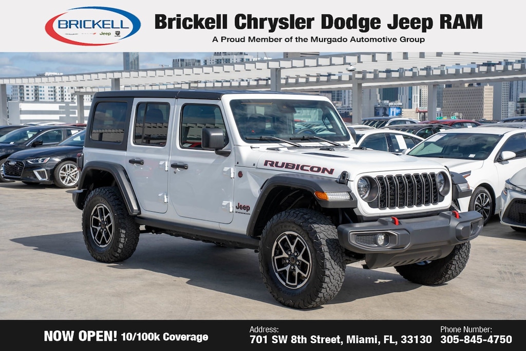 At Brickell CDJR, we make buying a pre-owned vehicle easy and stress-free. Every pre-owned vehicle is thoroughly inspected to ensure quality and reliability. For added confidence, we include a **10-year/100,000-mile powertrain warranty on all non-European brands** at no additional cost. Our dealership offers one of the largest selections of pre-owned inventory in the region, so you can find the right car, truck, or SUV for your needs. Our state-of-the-art service department, the largest in the country, is open seven days a week from 7 AM to 9 PM, ensuring your vehicle stays in top condition. Visit us at 701 SW 8th St, Miami, FL 33130, or call 305-777-2800 to learn more and schedule a test drive. The displayed price includes an incentive for financing with Brickell CDJR Finance Company. Price does not included our Perma-Plate .Outside financing and bank drafts are not accepted. All pre-owned vehicle exports are subject to an export fee. Taxes, title, registration, and dealer fees apply.