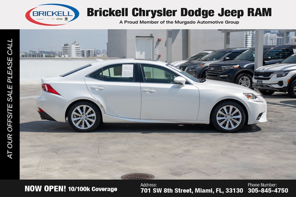 Don't miss your chance to own this exceptional 2016 Lexus IS 200t. Visit us at 701 SW 8th St, Miami, FL 33130, or call 305-777-2800 to schedule a test drive today. The displayed price includes an incentive for financing with Brickell CDJR Finance Company. Price does not included our Perma-Plate .Outside financing and bank drafts are not accepted. All pre-owned vehicle exports are subject to an export fee. Taxes, title, registration, and dealer fees apply.
