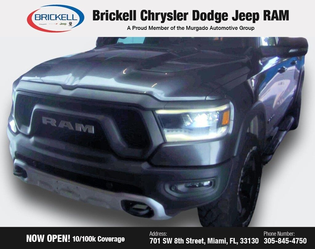 Granite Crystal Metallic Clearcoat 2019 Ram 1500 Rebel 4WD 8-Speed Automatic HEMI 5.7L V8 Multi Displacement VVT 1500 Rebel, 4D Crew Cab, HEMI 5.7L V8 Multi Displacement VVT, 4WD, Granite Crystal Metallic Clearcoat, Black Cloth.