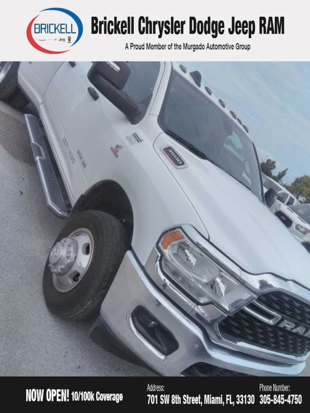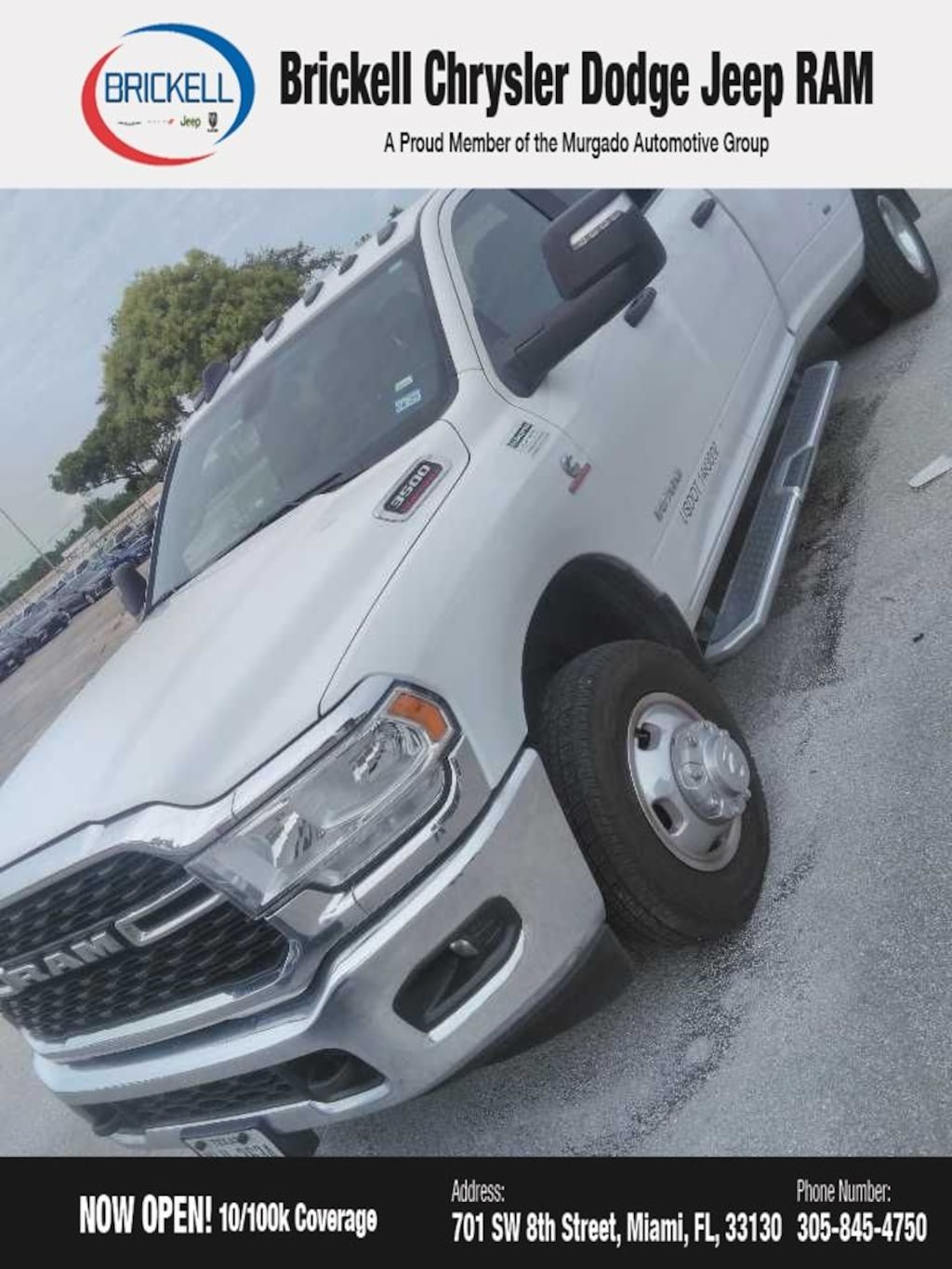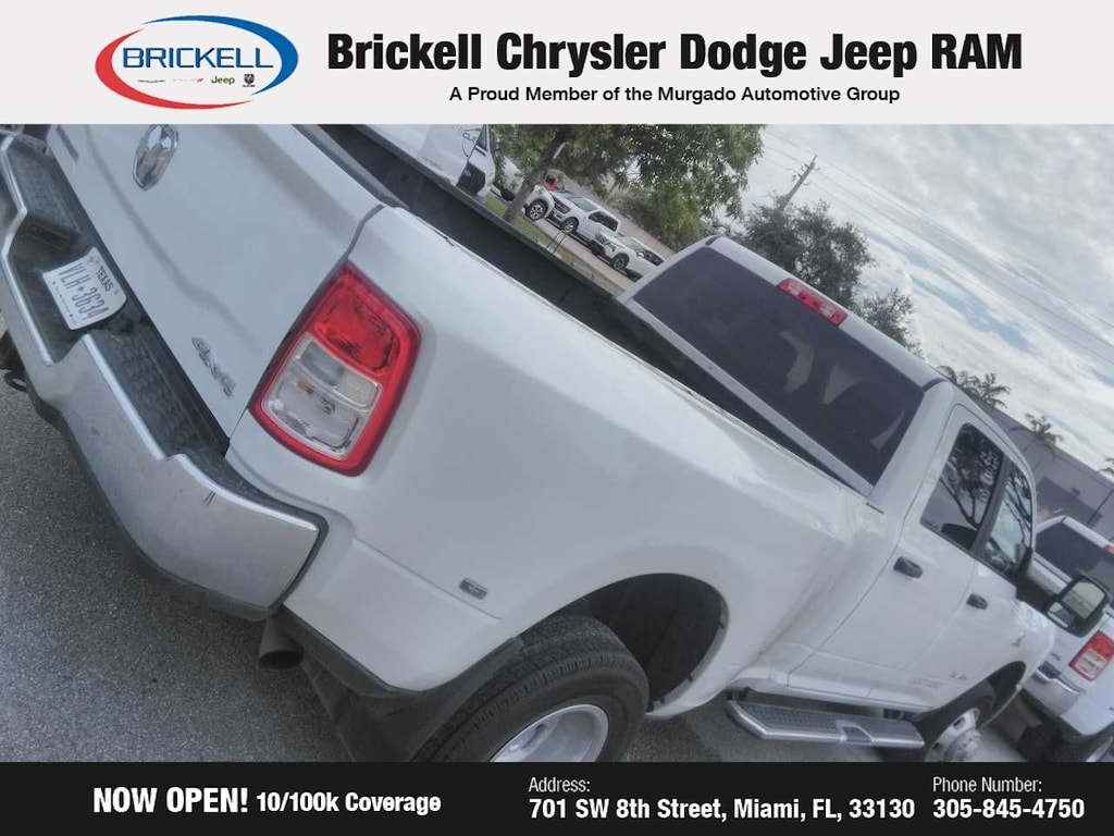 Don't miss your chance to own this exceptional 2024 Ram 3500 Big Horn. Visit us at 701 SW 8th St, Miami, FL 33130, or call 305-777-2800 to schedule a test drive and experience the power and capability for yourself. The displayed price includes an incentive for financing with Brickell CDJR Finance Company. Price does not included our Perma-Plate .Outside financing and bank drafts are not accepted. All pre-owned vehicle exports are subject to an export fee. Taxes, title, registration, and dealer fees apply.