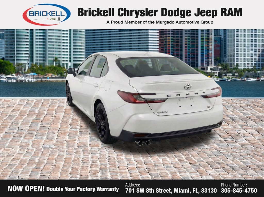 At Brickell CDJR, we make buying a pre-owned vehicle easy and stress-free. Every pre-owned vehicle is thoroughly inspected to ensure quality and reliability. For added confidence, we include a **10-year/100,000-mile powertrain warranty on all non-European brands** at no additional cost. Our dealership offers one of the largest selections of pre-owned inventory in the region, so you can find the right car, truck, or SUV for your needs. Our state-of-the-art service department, the largest in the country, is open seven days a week from 7 AM to 9 PM, ensuring your vehicle stays in top condition. Visit us at 701 SW 8th St, Miami, FL 33130, or call 305-777-2800 to learn more and schedule a test drive. The displayed price includes an incentive for financing with Brickell CDJR Finance Company. Price does not included our Perma-Plate .Outside financing and bank drafts are not accepted. All pre-owned vehicle exports are subject to an export fee. Taxes, title, registration, and dealer fees apply.