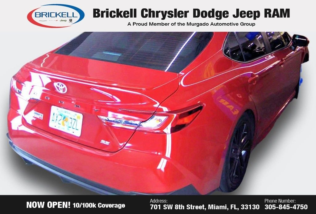 At Brickell CDJR, we understand that purchasing a pre-owned vehicle can be a daunting task. That's why we've gone the extra mile to ensure this Camry meets the highest standards of quality and reliability. Every pre-owned vehicle in our inventory undergoes a rigorous inspection process, and we're proud to back this Camry with a 10-year/100,000-mile powertrain warranty at no additional cost.